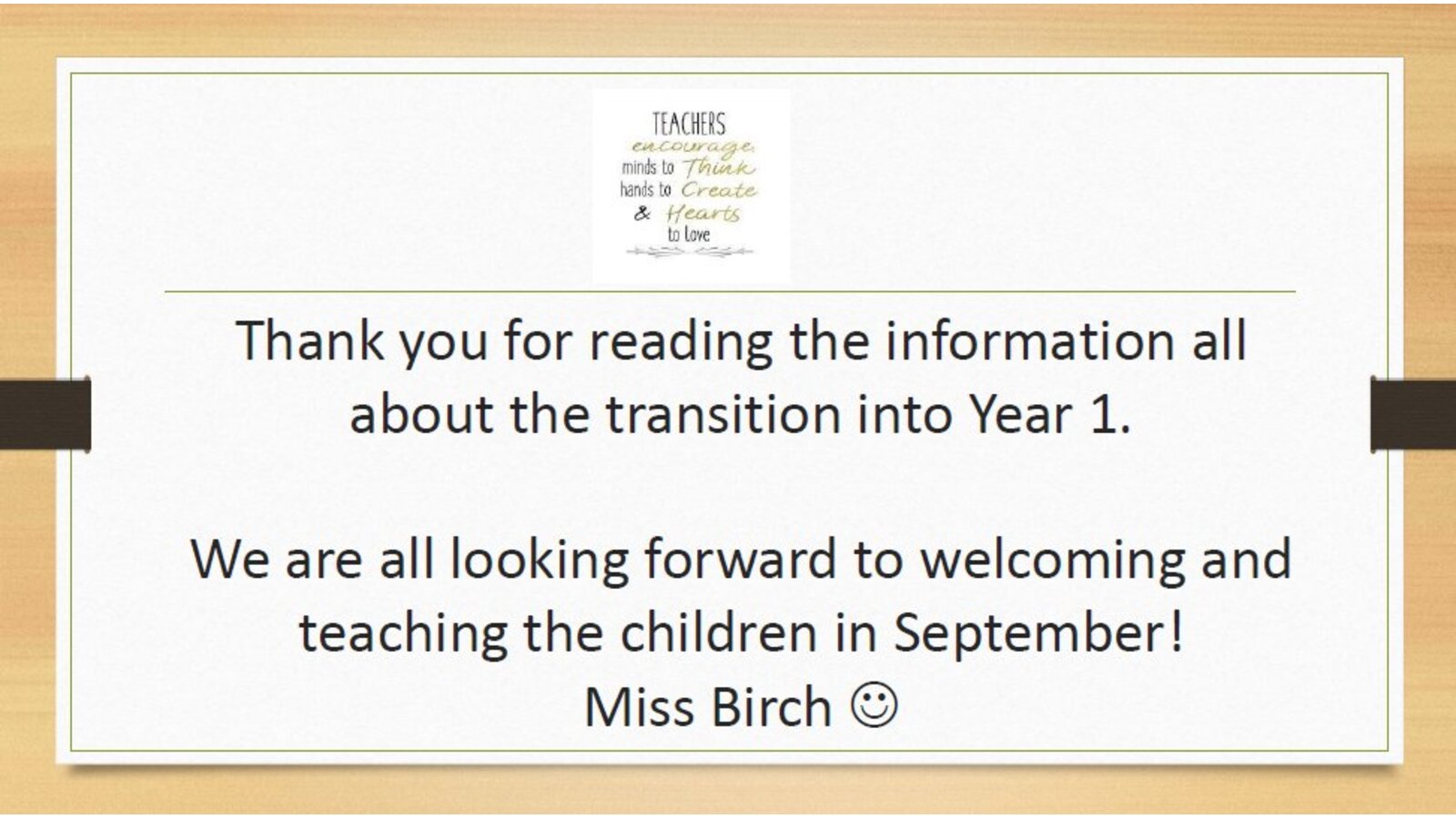 My name is Miss Birch and I am very excited to be your teacher!